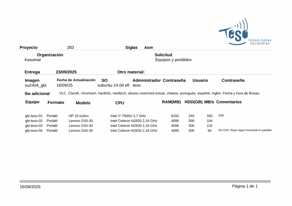 Los ordenadores están operativos configurados en portugés y el huso horario de Guinea Bissau.