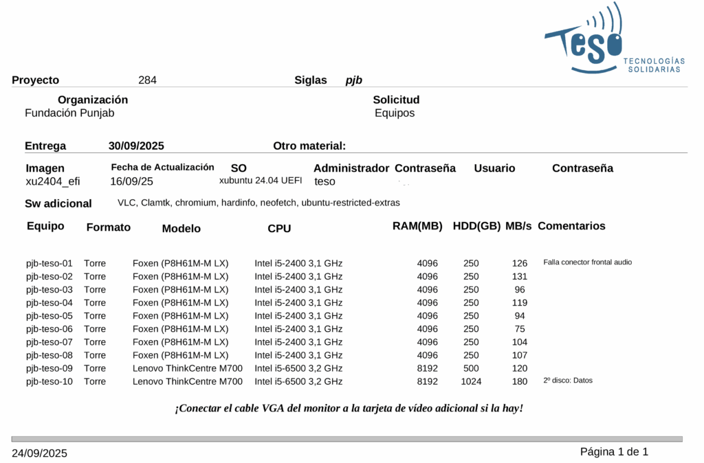 Los equipos formato Torres, con sus monitores, teclados, ratones y cables, están operativos usando el sistema xubuntu 24.04 con numerosas aplicaciones de uso habitual.