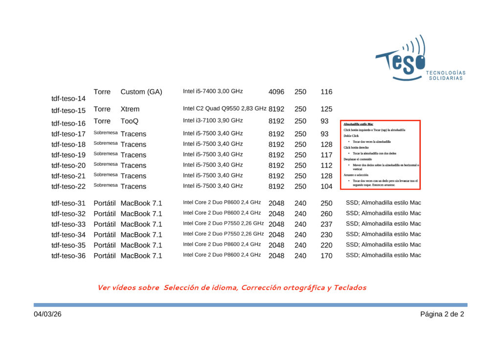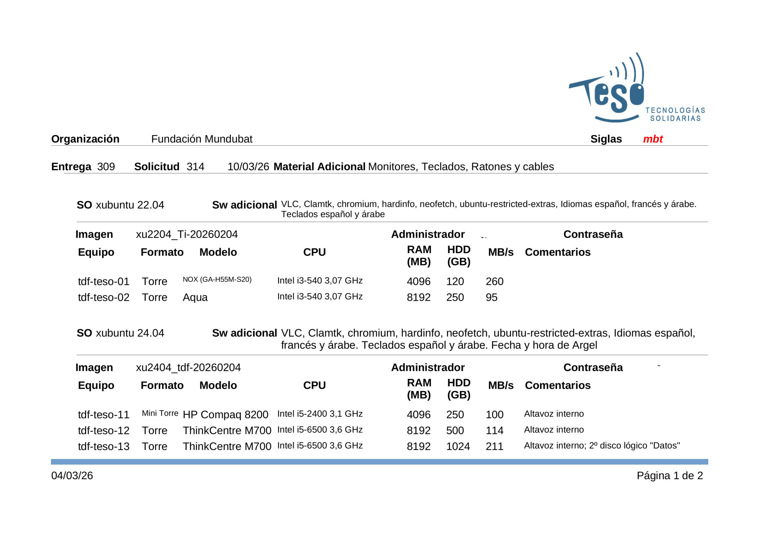 Se han entregado a la asociación Mundubat 20 equipos de diferentes formatos (portátiles, sobremesas y torres) con el sistema operativo instalado (xubuntu 24.04) y numerosas aplicaciones. Se han configurado de modo que se puede trabajar con ellos en español, árabe y francés.